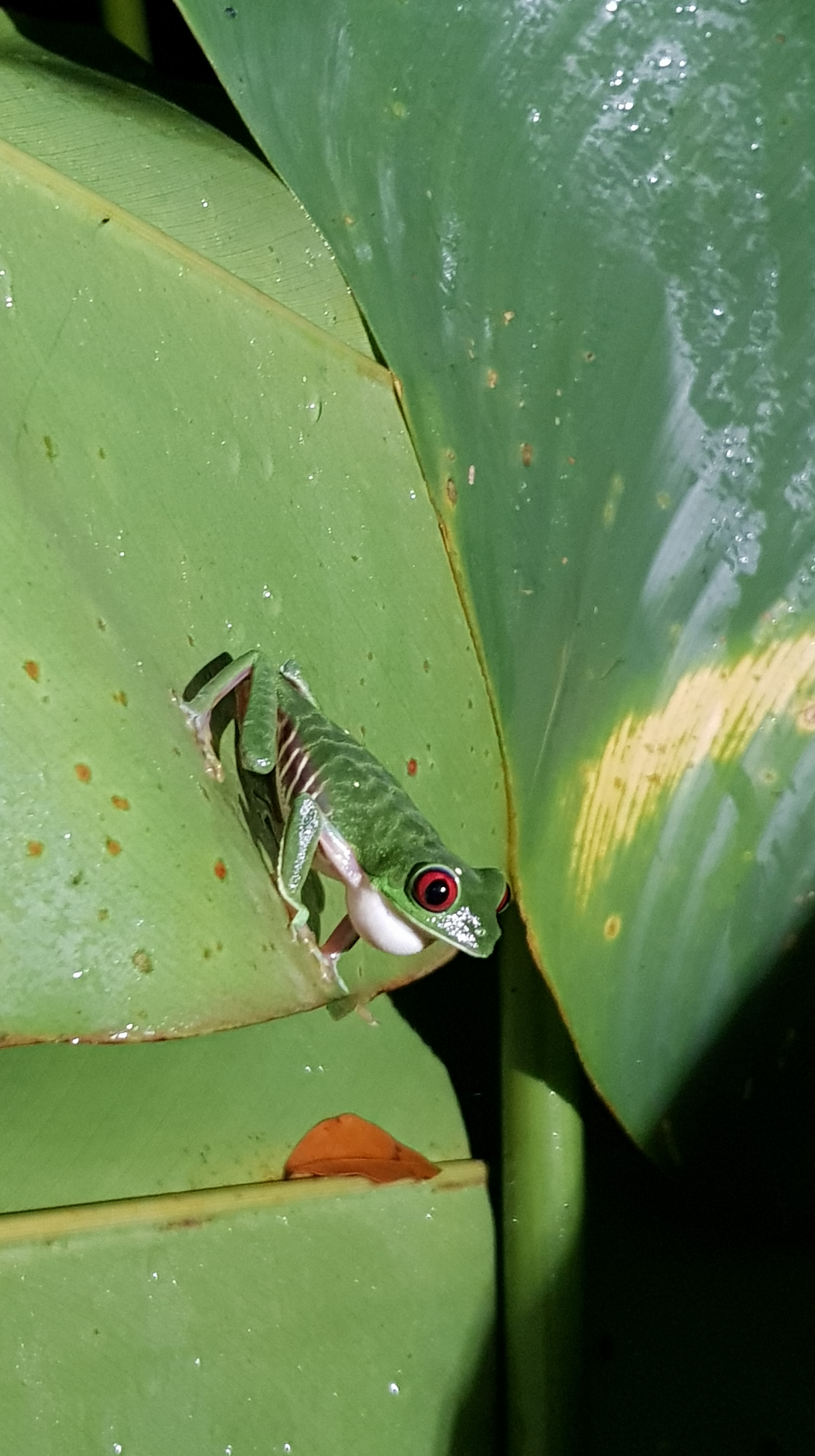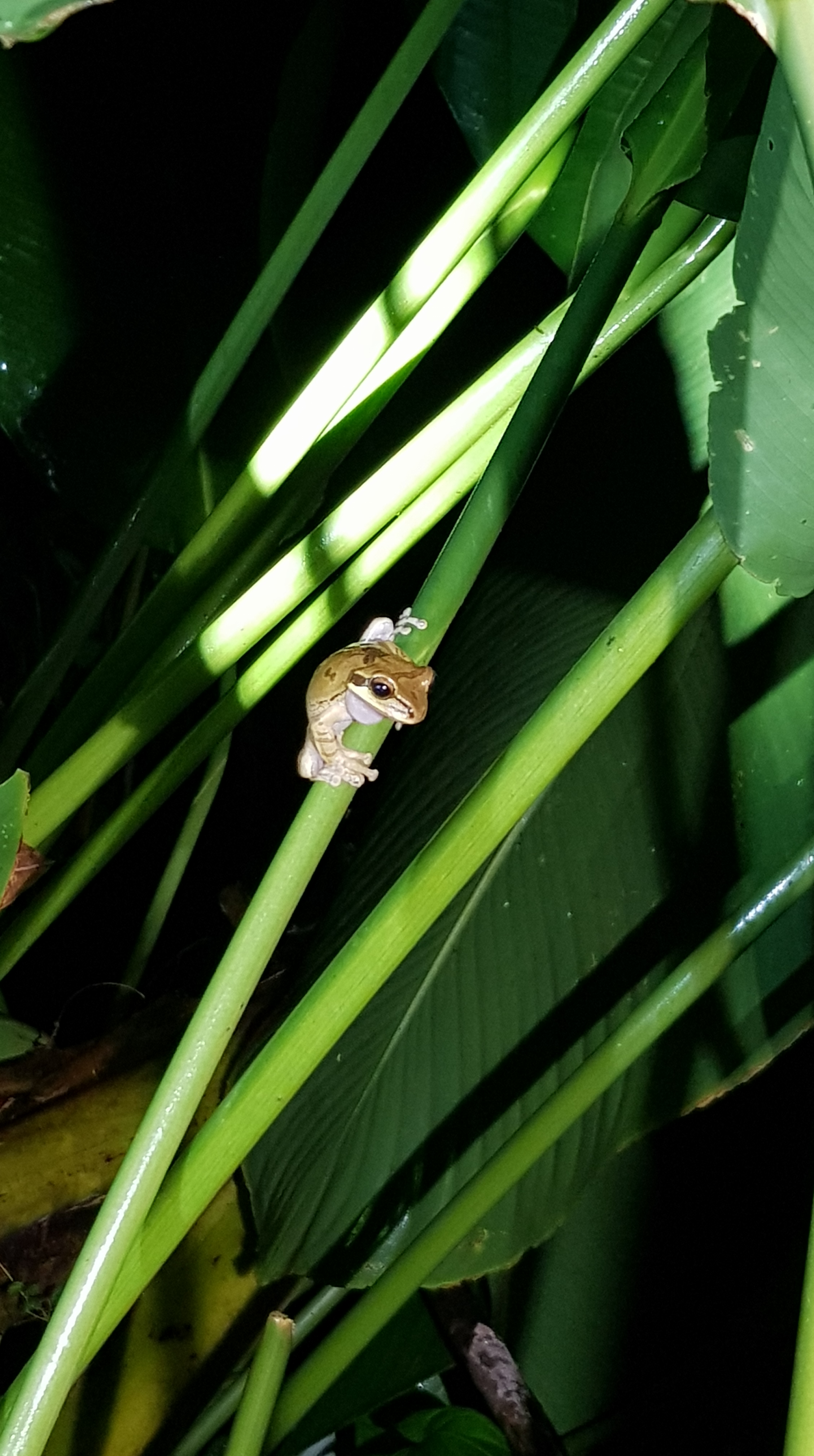 18h – La caminata nocturna fue por el río… estuvo bien, vimos varias ranas y arañas… muy relajante, quizás demasiado para mí.