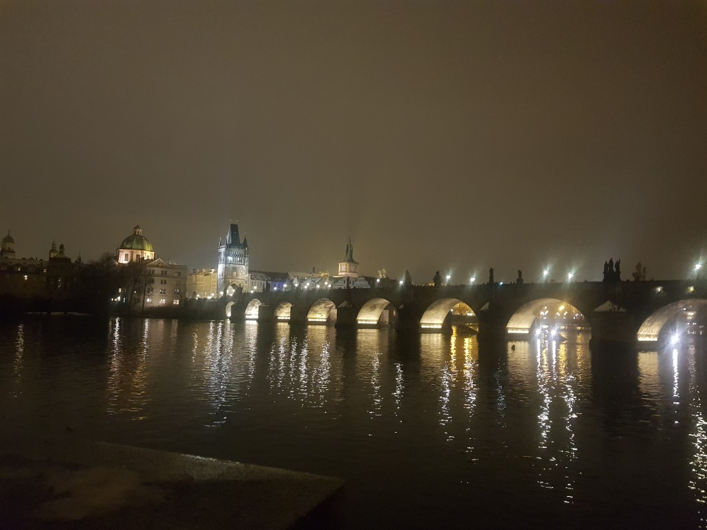 Bajamos caminando hacia la zona del puente Carlos, y justo debajo encontramos el siguiente puestecito de comida en la calle, estuvimos viendo el ambiente recorriendo el Río Moldava (también está la opción de hacer un crucero por el río, e incluso cenar). Acabamos cenando en Pivovar Narodni, estaba todo buenísimo: