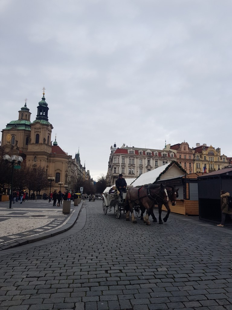 Para los que viajen a Praga y no sea época de Navidad,… por la mañana estuvimos caminando y descubriendo otra parte de la ciudad, desde la Torre de la Pólvora, piérdete por sus calles hasta llegar a la plaza de la ciudad vieja: