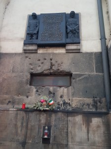 Muy cerca de la Casa Danzante está la iglesia ortodoxa de los santos Cirilo y Metodio, dónde dos soldados checos Gabcik y Kubis estuvieron escondidos de los nazis, pero finalmente cayeron en un tiroteo de las SS en junio de 1.942. Más info de la historia del «Carnicero» aquí.