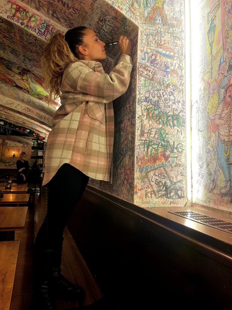 Último día en Praga, teníamos el vuelo de las 15h a Londres, así que aprovechamos para hacer unas últimas visitas al centro y despedirnos con unas buenas «beers» de Praga en «U Pivrnce» y dejar nuestros nombres en las paredes. Ya que el primer día no pudimos estar abajo.