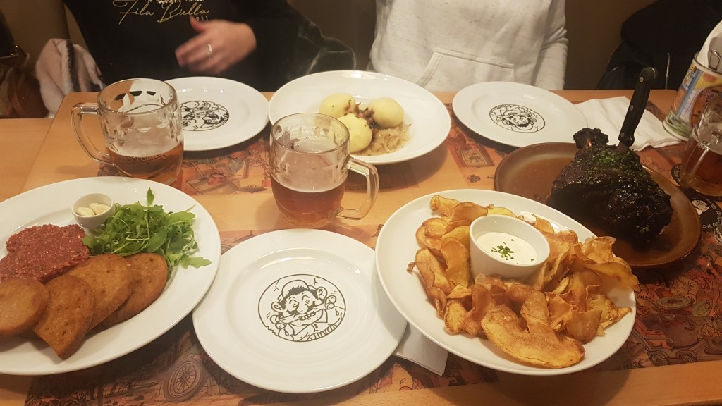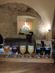 Para acabar el día y remediar el frío, fuimos a una Cata de cervezas en U Kunstatu y cenamos unas salchichas típicas de Praga. Nos gustó mucho el sitio y las diferentes variedades de cerveza, tomar nota! 😉