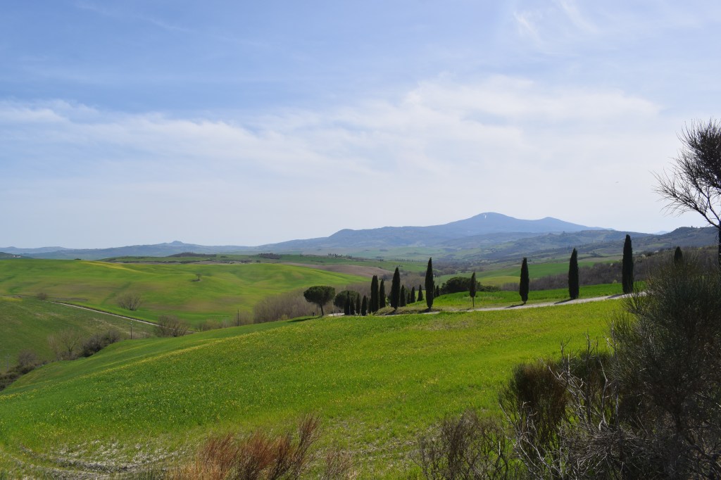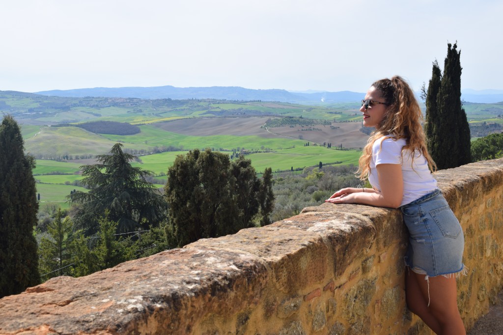 Cogimos rumbo a visitar San Quírico d’Orcia, es un pueblecito enmurallado lleno de tiendas, muy bonito! En el camino encontraréis unos paisajes con efecto «aterciopelados» que en fotos ni se aprecia, pero son espectaculares!