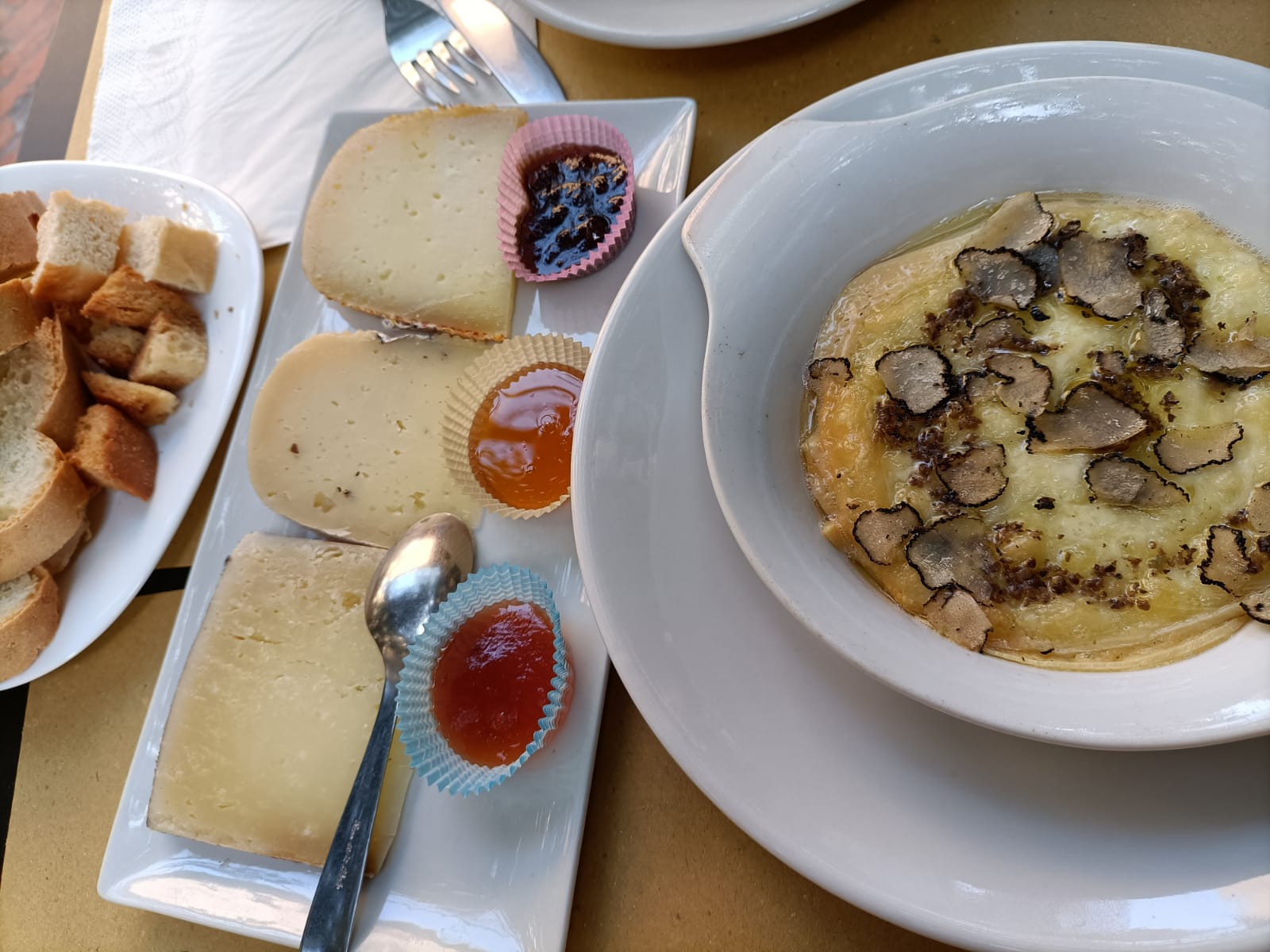 Siguiente parada, Pienza, a 5 minutos en coche de San Quírico d’Orcia, paseamos por todo el pueblecito, es pequeño y con mucho encanto. Alrededor de la muralla hay restaurantes para degustación de embutidos y vinos, muy bonito. Comimos en Trattoria Latte di Luna, atención estupenda y todo riquísimo, os dejo abajo una imagen de la fondue que pedimos ;P Además por cortesía de la casa nos invitaron a degustar queso al ron y de vino, muy peculiar y logrado el sabor.