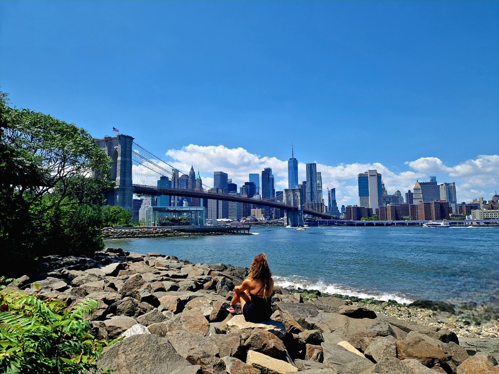 - Hacer fotos del puente de Brooklyn desde Fulton Ferry State Park (vistazas) desde la playa,