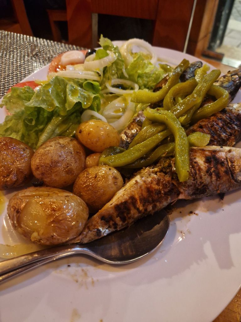 Después fuimos a ver el atardecer desde Serra do Pilar, hay muchísimo ambiente en los jardines de enfrente antes de subir, y arriba también. Música en directo, prepárate algo de bebida y disfruta del espectáculo. Después cruzamos el puente D. Luis I por arriba, y fuimos en busca de un sitio para cenar. Cenamos en Restaurante Maria Rita, y al llegar temprano encontramos mesa sin tener reserva, os aconsejo que reservéis con antelación pues el lugar es pequeño y siempre está lleno. Probamos las sardinas y el bacalao al estilo Mª Rita… pfff todo un acierto! Os lo súper recomiendo! Tened en cuenta que los platos son grandes y abundantes a la hora de pedir, nosotros pedimos estos dos y nos costó acabarlos.