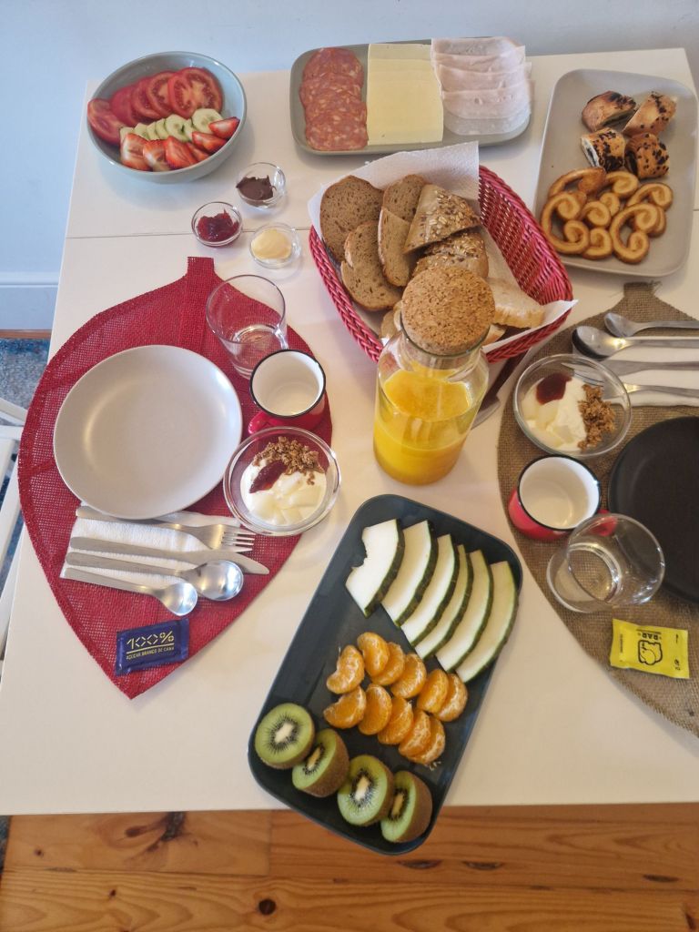 Al día siguiente desayunamos en la habitación, la dueña del edificio nos lo preparó, desayuno súper completo, aquí os dejo una foto para que os hagáis una idea (fruta, pan y embutido, dulces, zumo, cafés, yogures):