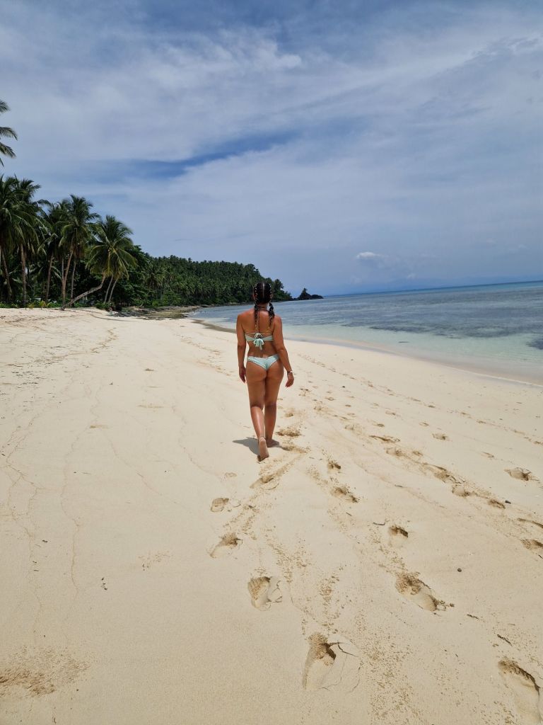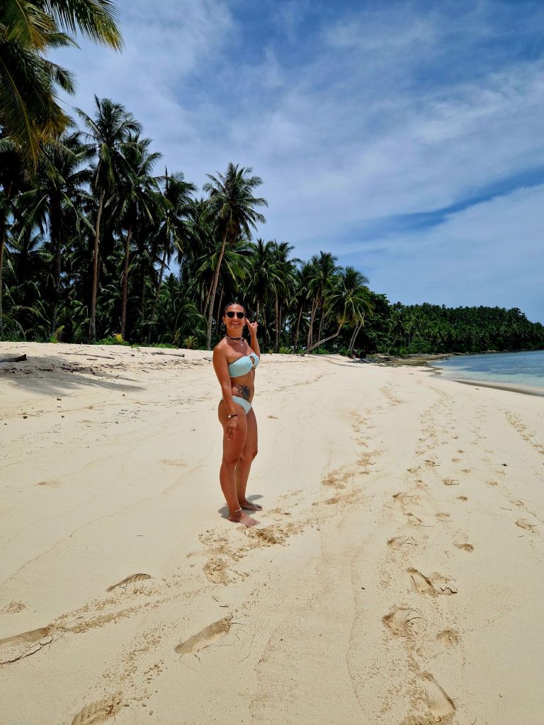 En Siargao también alquilamos una moto para hacer ruta por nuestra cuenta por la isla, es lo más recomenable y comodo, fuimos hacia el norte… rumbo a Alegria beach, una playa del pacífico… pero camino a las piscinas de Magpopongko white beach, pinchamos la rueda de la moto, por suerte, en el siguiente pueblo encontramos un taller de motos y el chico super rápido la reparó🤞, nos fuimos a comer en un sitio fatal, justo al lado de la playa… no lo voy ni a mencionar.