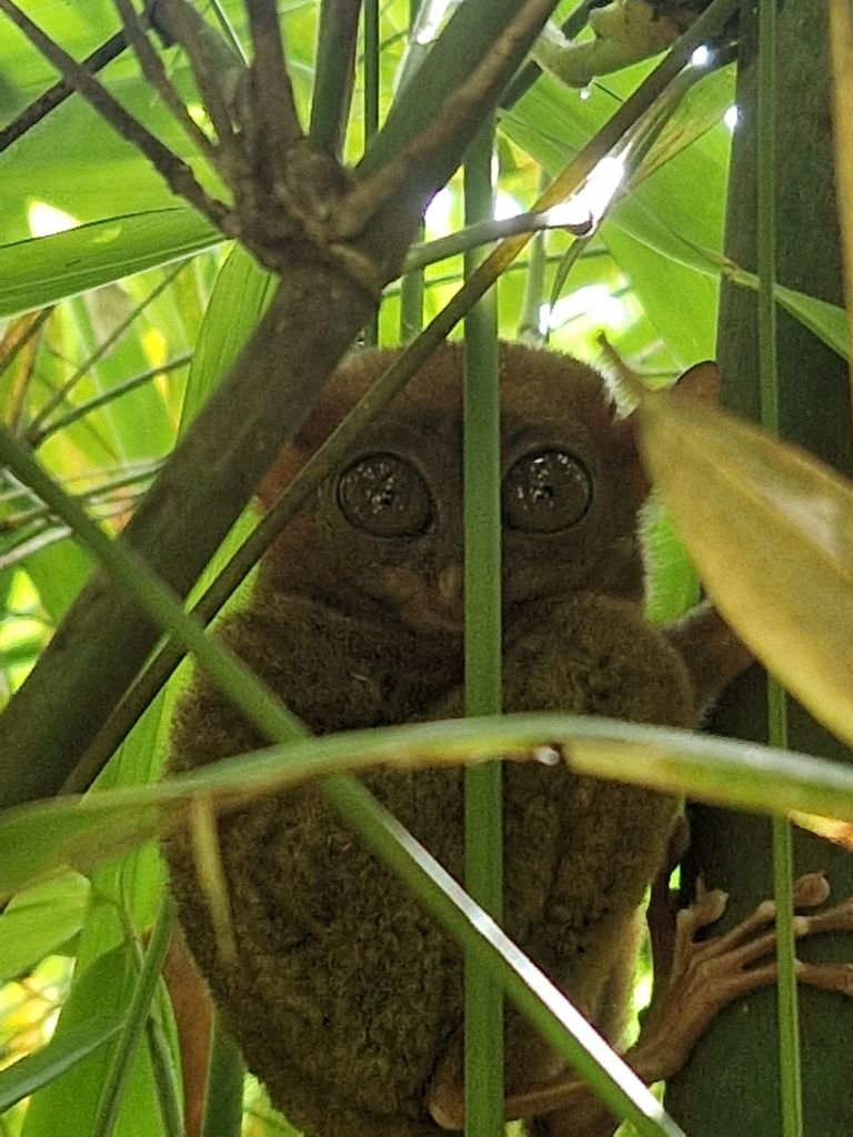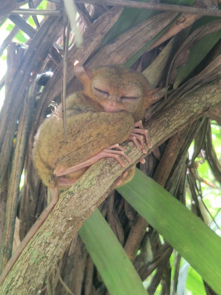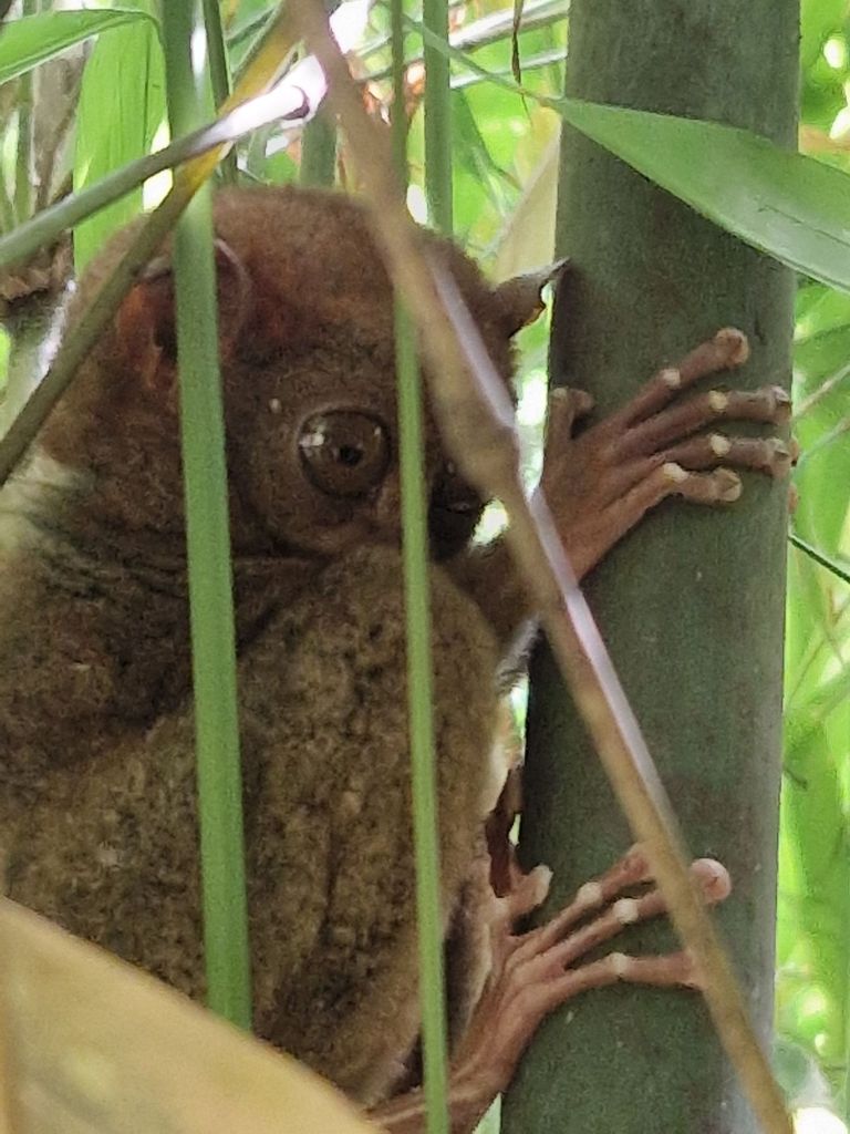 Cogimos rumbo al Santuario de Tarseros, hay como unos 100, vimos 3 o 4 durmiendo (se pueden ver de día porque duermen, de noche sería casi imposible ya que saltan entre 2 y 5 metros y recorren 1.5kms, se alimentan de insectos, y su peso es de 23 gramos)… son monisimos🥰