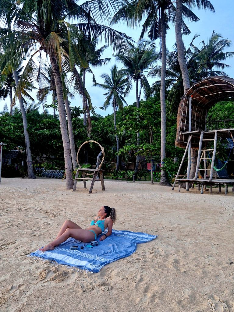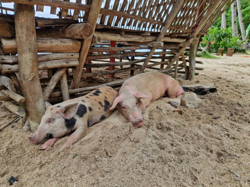Al dia siguiente desayunamos en el hotel, un desayuno muy completo y nos fuimos por nuestra cuenta en tuk tuk hasta Coconut beach, una playa espectacular que además tiene unos cerditos preciosos viviendo en la isla, y no tienes que pagar como en las Bahamas para verlos y hacerte fotos con ellos.