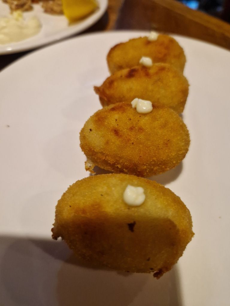 Por la tarde aprovechamos para dar un paseo por el pueblo, como llovía aprovechamos para tomar algo, y cenar en La Santa, un restaurante de catalanes con muy buenas recomendaciones. Hicimos reserva previa por la tarde, pues se suele llenar bastante. La atención de la chica muy agradable, nos estuvo explicando su experiencia, y también conocimos al chef y dueño del local. Después de tantos días comiendo comida local, pudimos comer tortilla de patatas, calamares… todo muy rico ;P