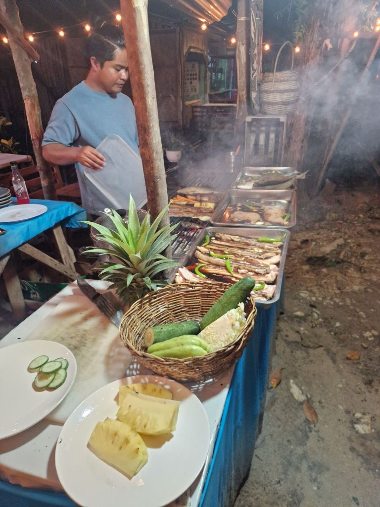 Comimos en carenderia Gacayan, había leído que es típico comer en estos sitios, locales y comida casera además de muy barato. Alquilamos una moto en el hotel, y nos fuimos a pasar la tarde a la cascada Pamuayan. Queda muy cerquita del hotel, llovía un poquito pero el paseo fue agradable. A la vuelta nos duchamos y fuimos a cenar a star Apple canteen, un lugar donde eliges tu la comida fresca (pescado, verduras, carne) y te la hacen a la parrilla al momento. Muy económico también y muy rico. El lugar es pequeño y no reservan, así que os recomiendo no ir muy tarde porque siempre está lleno.